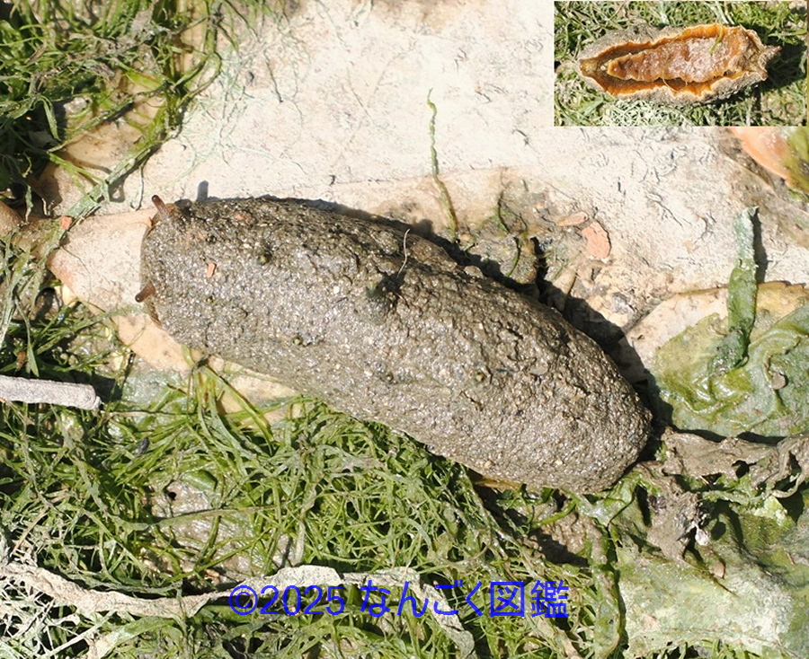 マングローブ林や干潟の砂泥地などで見られる。体は長楕円形で体色は黒褐色、背面はややふくらみ、突起が並ぶ。