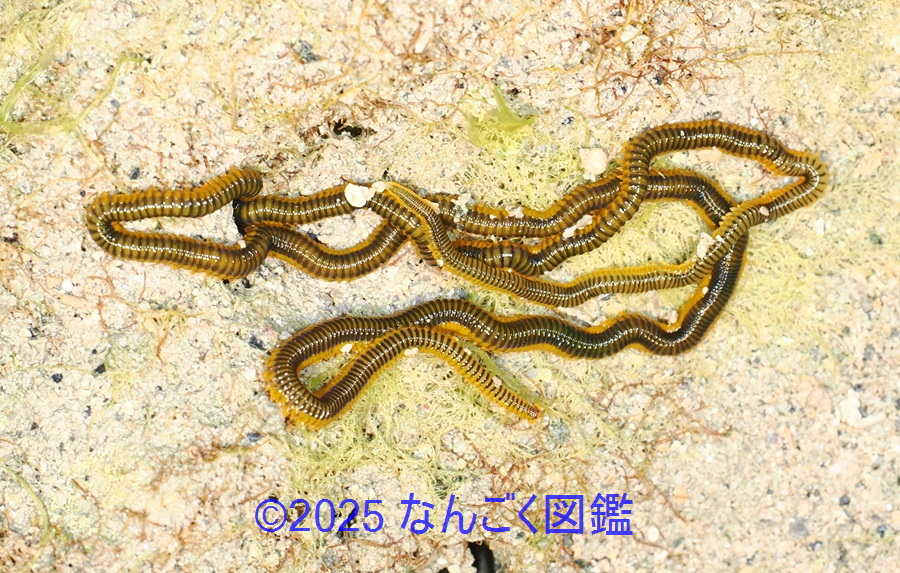 サンゴ礁や干潟の潮間帯で見られるゴカイの1種。体節は黄色で褐色の縞模様があり、体型は非常に細長く背触鬚は小さい。体前部には触手鬚が4本ある。主に夜間活動し、潮が引いた岩礁の上を這いまわる。潮が満ちてくると岩のくぼみに入る。