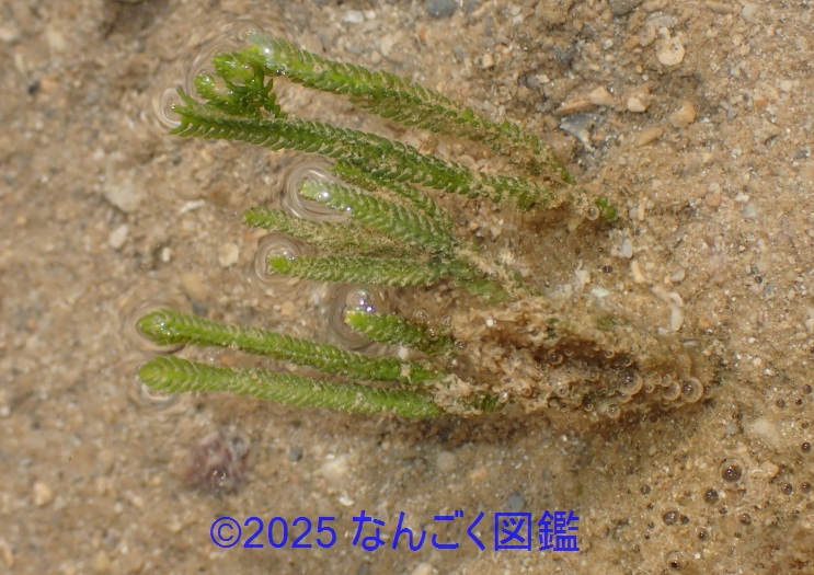 岩礁やサンゴ礁の砂礫が混じる砂地のタイドプールでやや稀に見られるイワヅタ科の海藻。匍匐枝は円柱形で太く淡緑色〜緑褐色で、砂中や岩上を匍匐し群生する。直立枝は枝分かれし、2〜4列に円錐形の小枝が櫛の歯状に出る。ヒノキ科ビャクシン属のイブキという常緑針葉樹に似ることが本和名の由来。